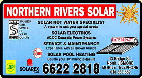 Our Business is based in Lismore and is run by Chris and Debbie Bromley. We are distributers for Solar Edwards hot water systems. We also carry a large range of Solar Electric items. Such as Solar Panels, deep cycle batteries, inverters, battery chargers, regulators, DC Lighting, cable and bits and pieces to make it all work! We also take 2nd hand goods on consignment. We offer competitive prices. Phone us for helpful and friendly service and advice.